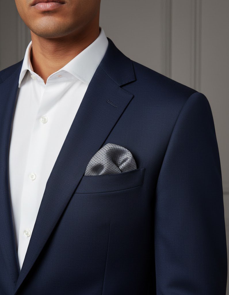 Add a dose of dapper style to your favorite two-piece with the Bux shark skin geometric pocket square. This pocket square is perfect to match with a grey or navy suit for a sharp look at the office.